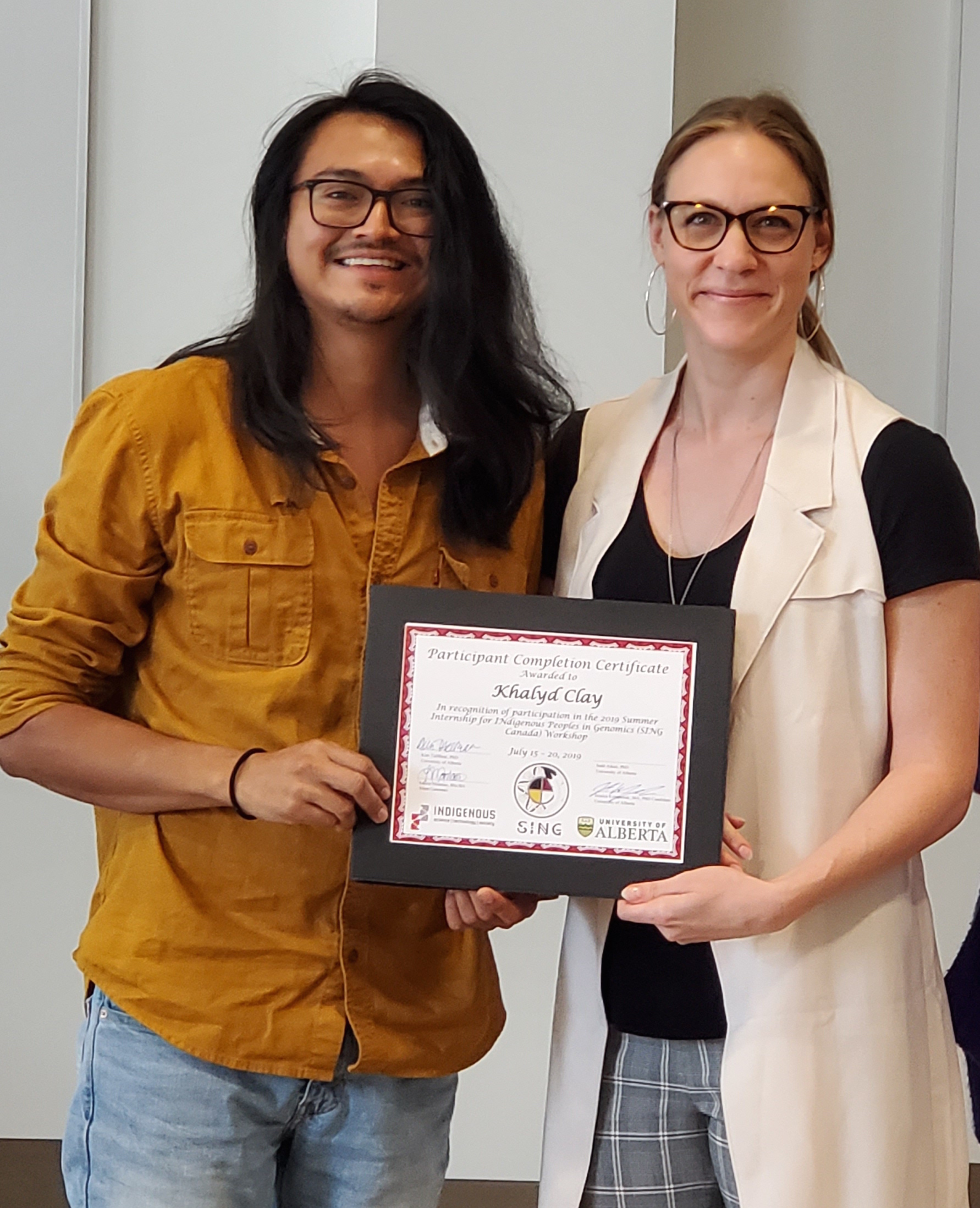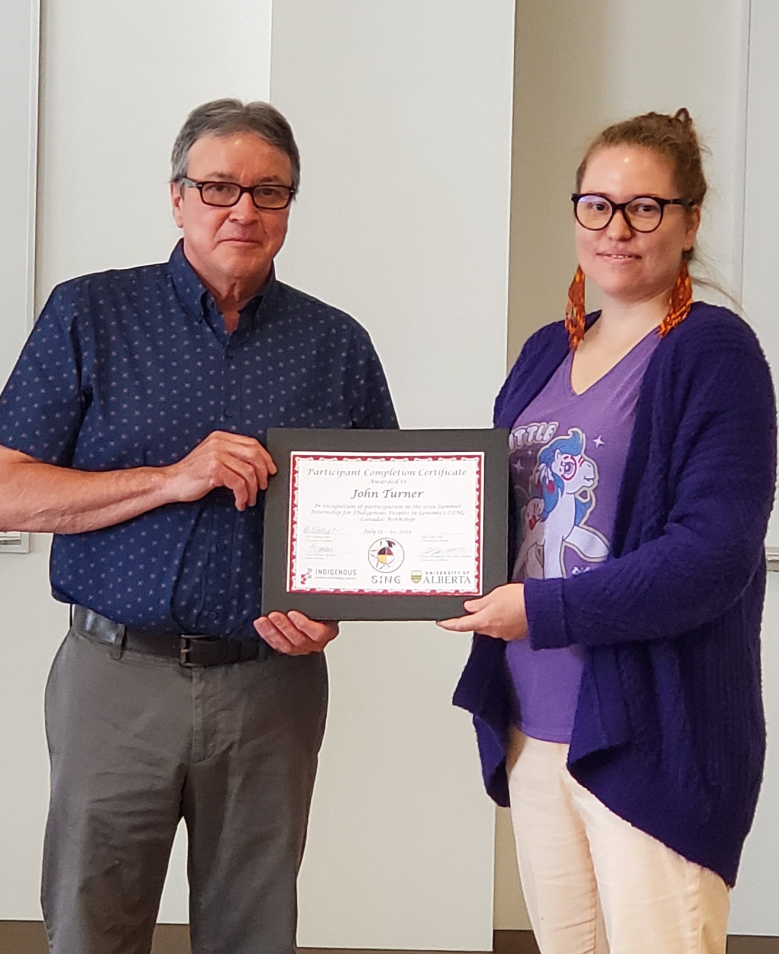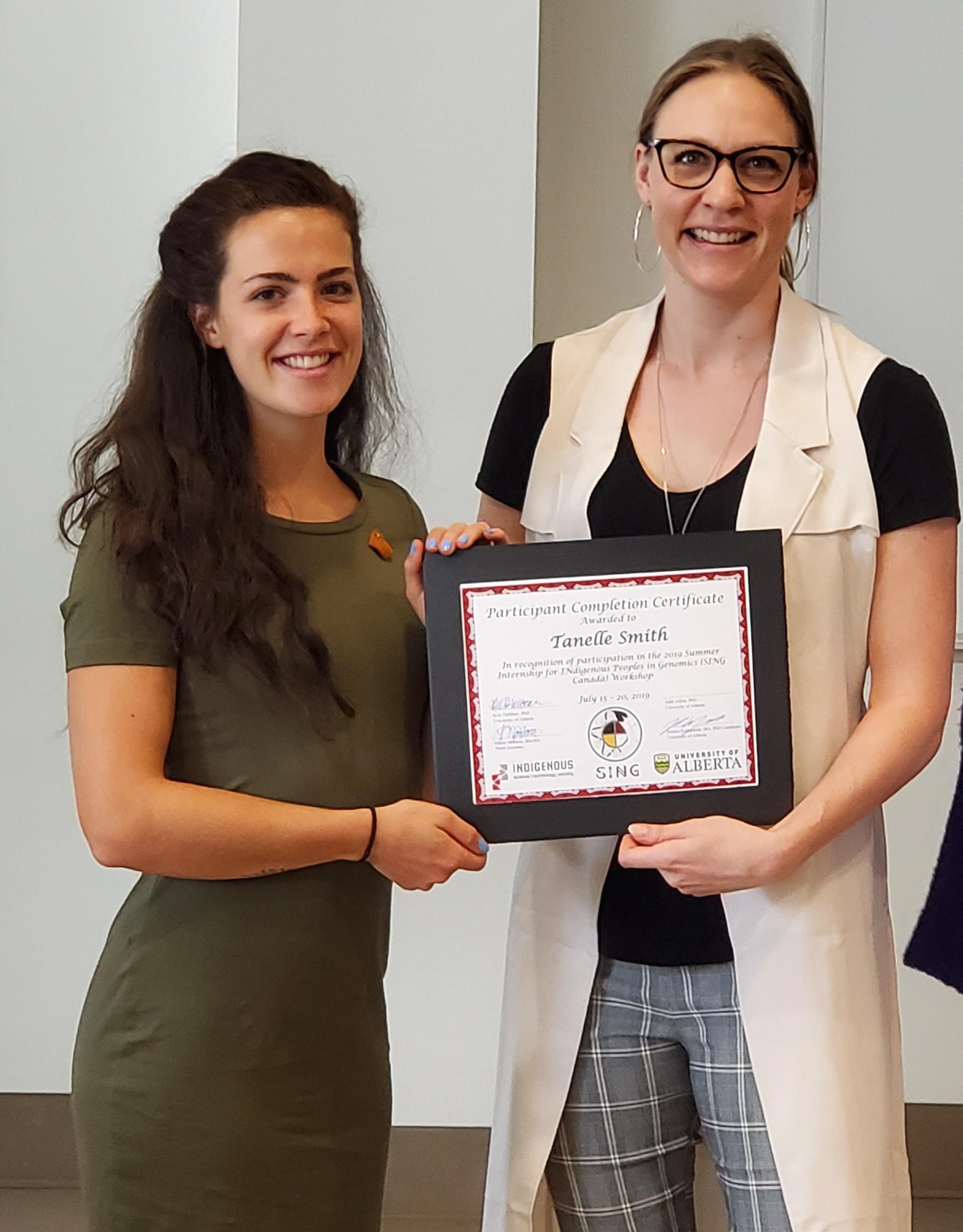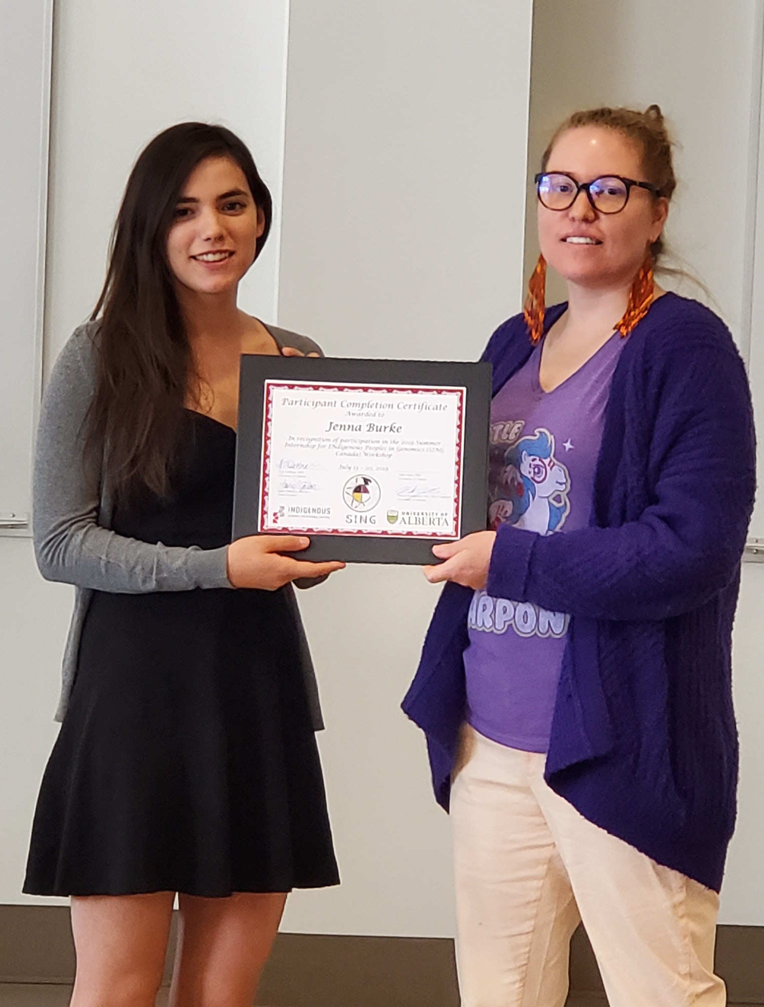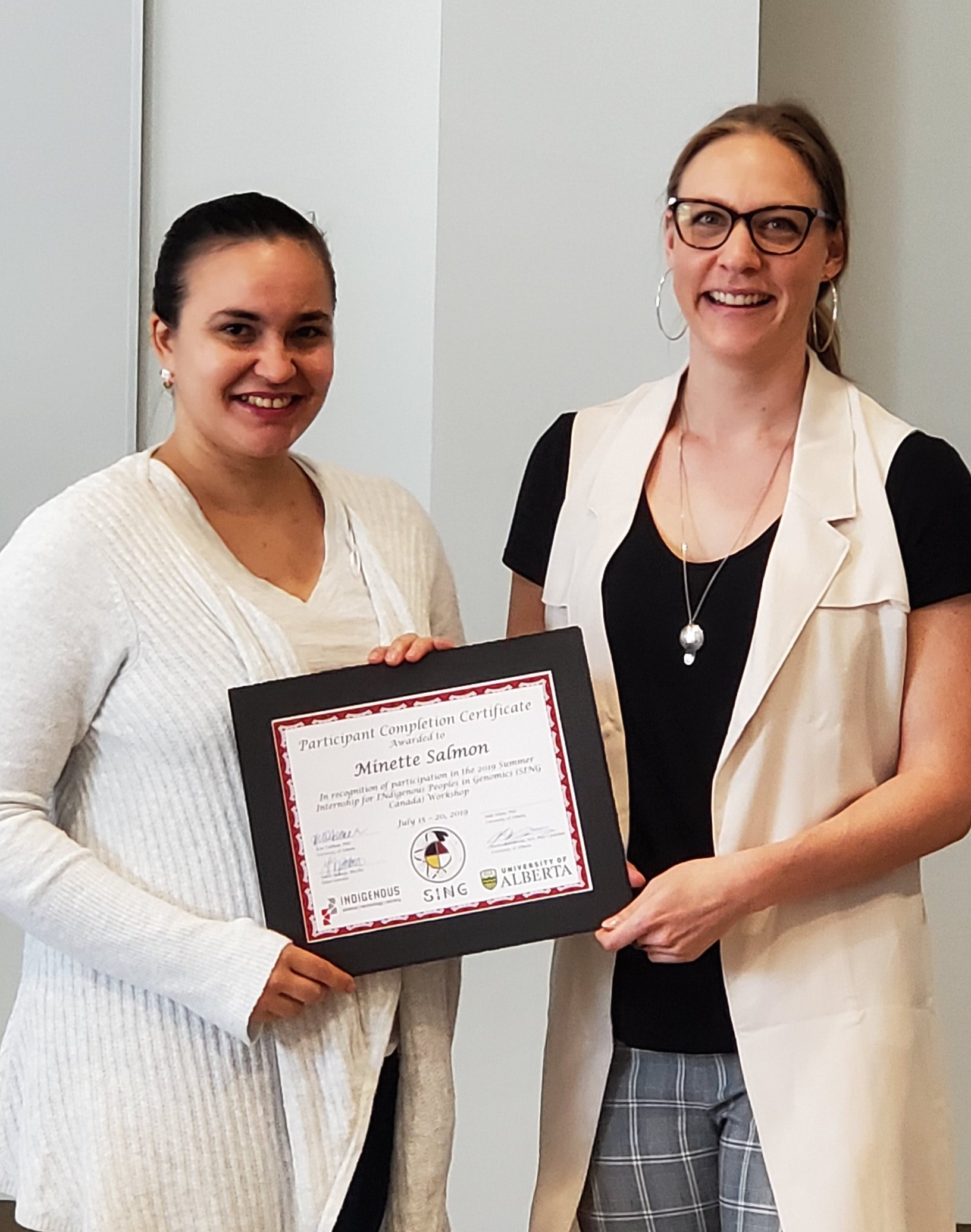 The 2019 Summer internship for INdigenous peoples in Genomics Canada (SING Canada) took place from 14 July – 20 July 2019 at the University of Alberta in Edmonton, AB on Treaty 6 and Métis territory. For this workshop, a multi-disciplinary team of faculty members, including renown Indigenous Studies scholar, Dr. Kim TallBear, led participants in investigating the interdependence of human and non-human animal health related to chronic wasting disease (CWD). CWD is an always fatal contagious prion disease that affects deer, elk, moose, and reindeer (cervids). In Canada, CWD is currently present in deer, elk, and moose of Central and Southern Alberta and Saskatchewan; and the range of the disease continues to expand. Indigenous hunters and communities are uniquely impacted by the effects of CWD and have serious concerns regarding its implications for human, animal, environmental, and community health. Yet, Canada lags far behind in involving Indigenous peoples in awareness and management of CWD. For example, nearly all public education materials about the disease are both geared and delivered to non-Indigenous hunters; and there is only sporadic inclusion of Indigenous peoples on provincial CWD advisory committees.